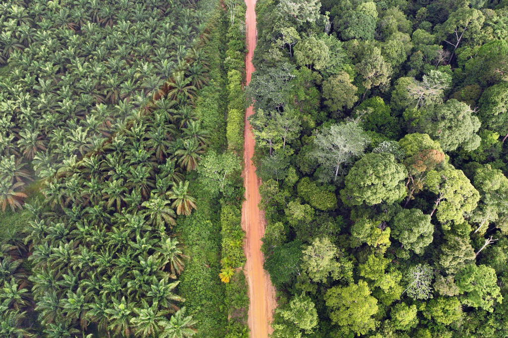 Monoculture tree farms do very little to sequester carbon compared to mature, biodiverse forests. They do even less to harbor biodiversity. Here, you see an oil palm plantation (left) and native tropical rainforest on the island of Sumatra in Indonesia. Image by Rhett Ayers Butler/Mongabay.