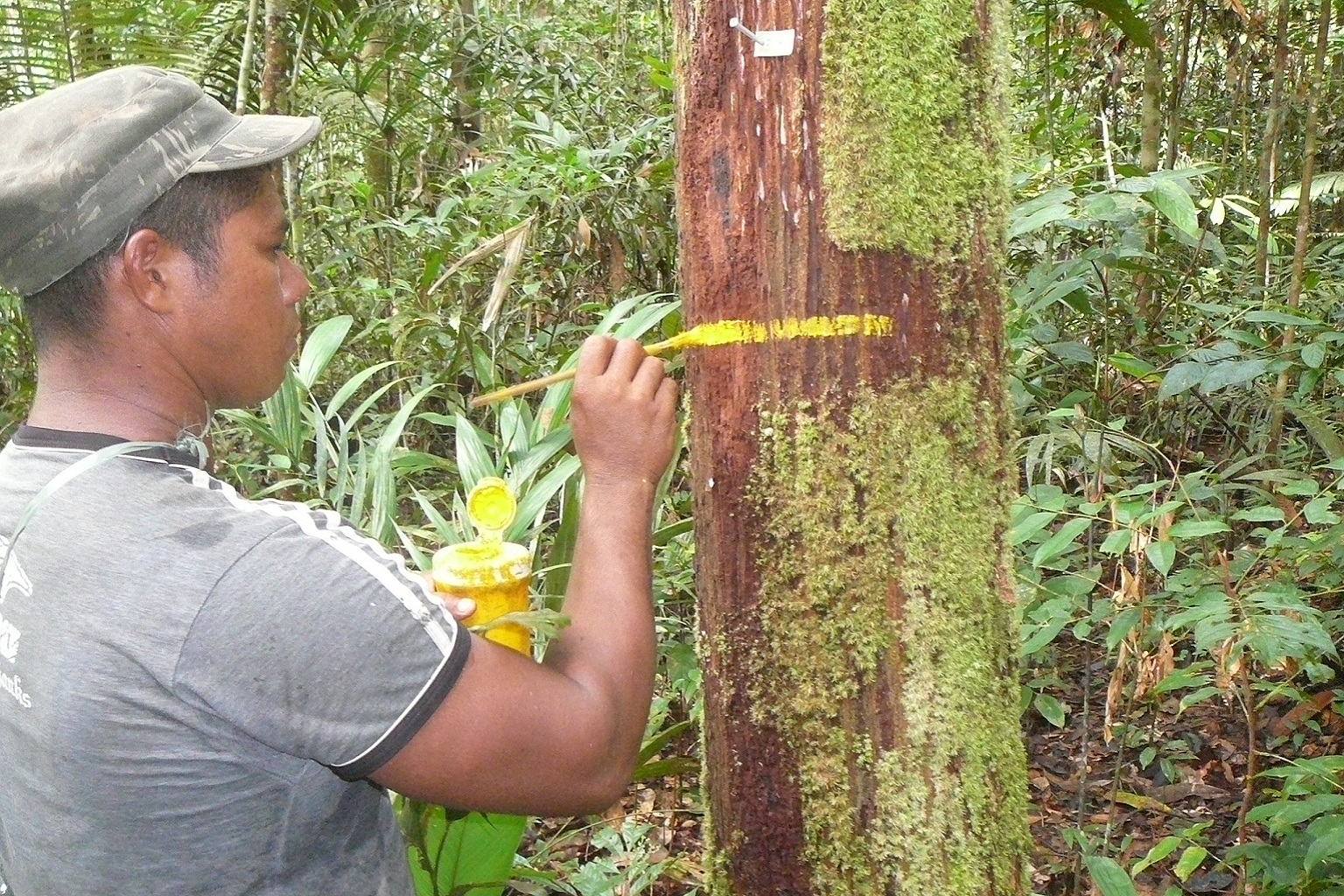 A research scientist marks a tree in a shallow water table forest in Brazil to gauge its response to drought conditions. More than a third of the Amazon is composed of such wetland forests, suggesting that huge swaths of the world’s largest rainforest may be far more resistant to severe droughts than recognized by previous research. Image courtesy of Flávia Costa.